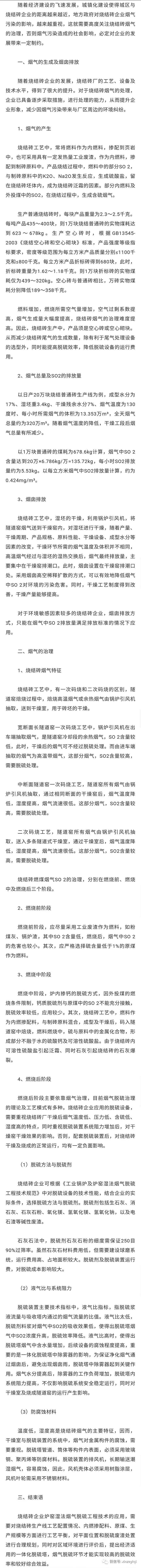 燒結磚瓦的煙氣怎么處理?