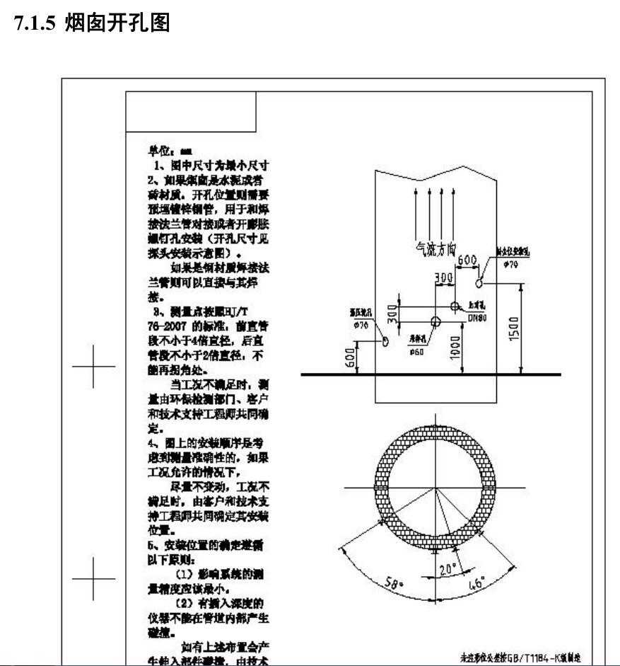 安裝煙氣在線(xiàn)監(jiān)測(cè)設(shè)備的煙囪上,按照國(guó)家75/76標(biāo)準(zhǔn)的話(huà),一般情況下要開(kāi)4個(gè)或者5個(gè)孔;都有氣體污染物孔、溫壓流孔、粉塵(顆粒物)孔、環(huán)保局比對(duì)口;如果測(cè)濕度的話(huà),那就加一個(gè)濕度孔。在開(kāi)好孔之后,一定要根據(jù)煙囪的材質(zhì),安裝好相應(yīng)的法蘭。